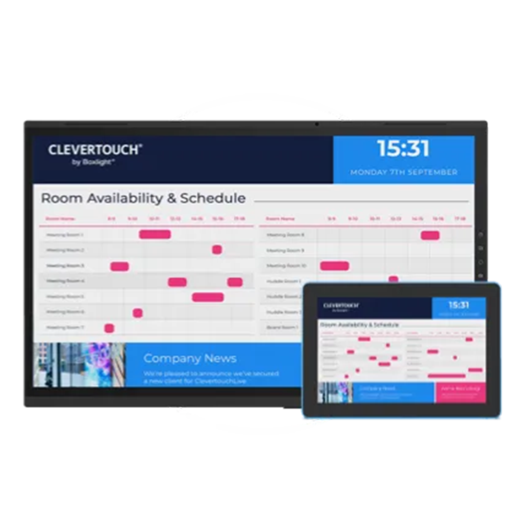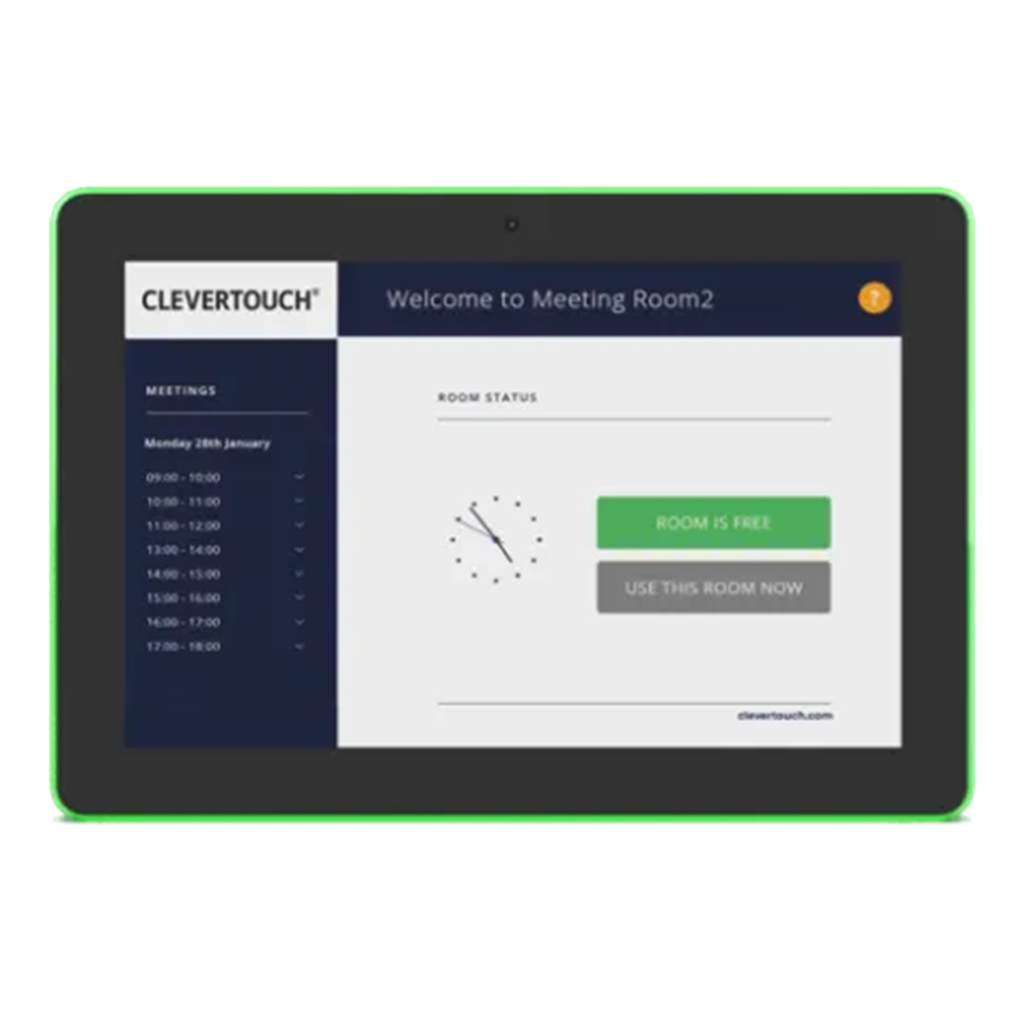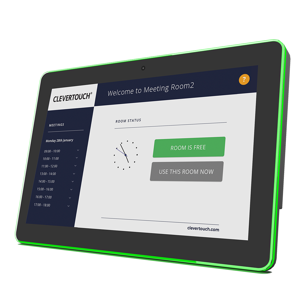 CleverLive Rooms 2 este noul ecran tactil de 10.1" de la Clevertouch care se monteaza pe peretele din afara salii de sedinte si care afiseaza disponibilitatea acesteia prin LED-uri: verde (libera) si rosu (ocupata). Sistemul se integreaza perfect cu Google Calendar, Microsoft 365, Outlook si Microsoft Exchange astfel rezervarile sunt actualizate automat si in timp real. Nu este necesar niciun software suplimentar. In plus, panoul dispune si de functionalitati avansate de Digital Signage.