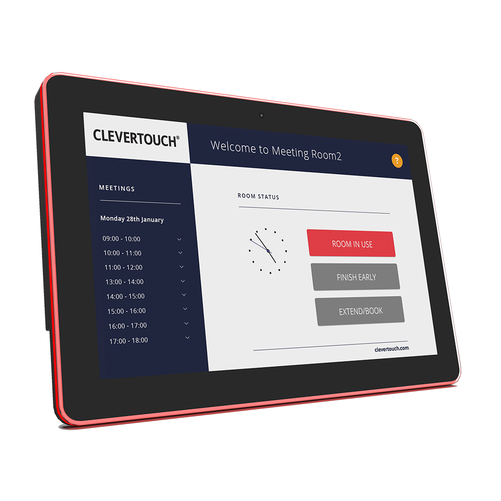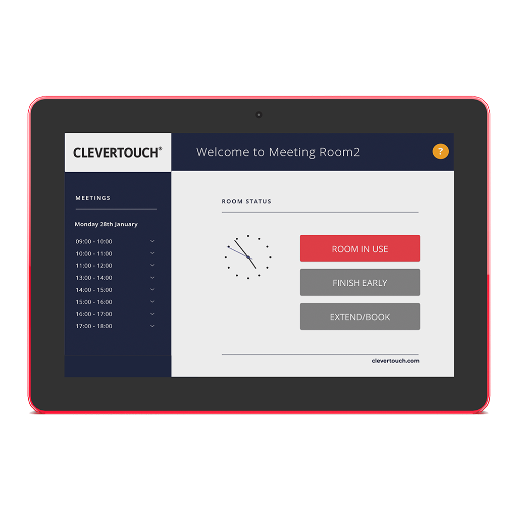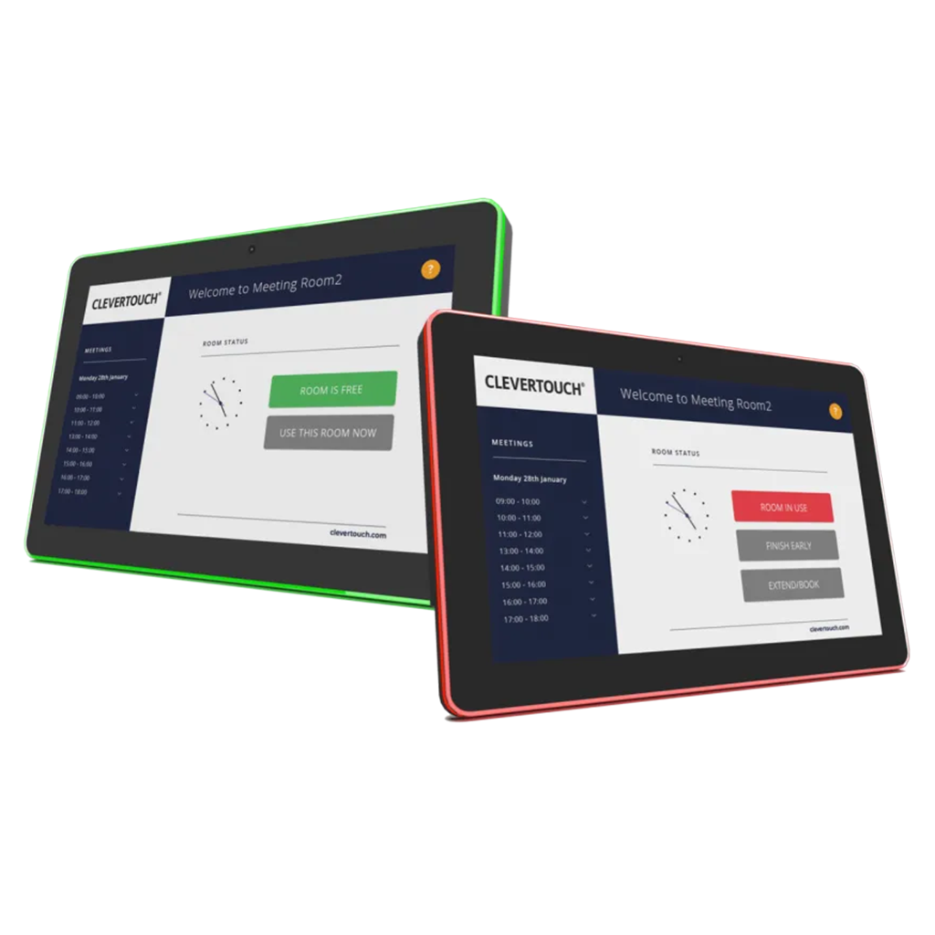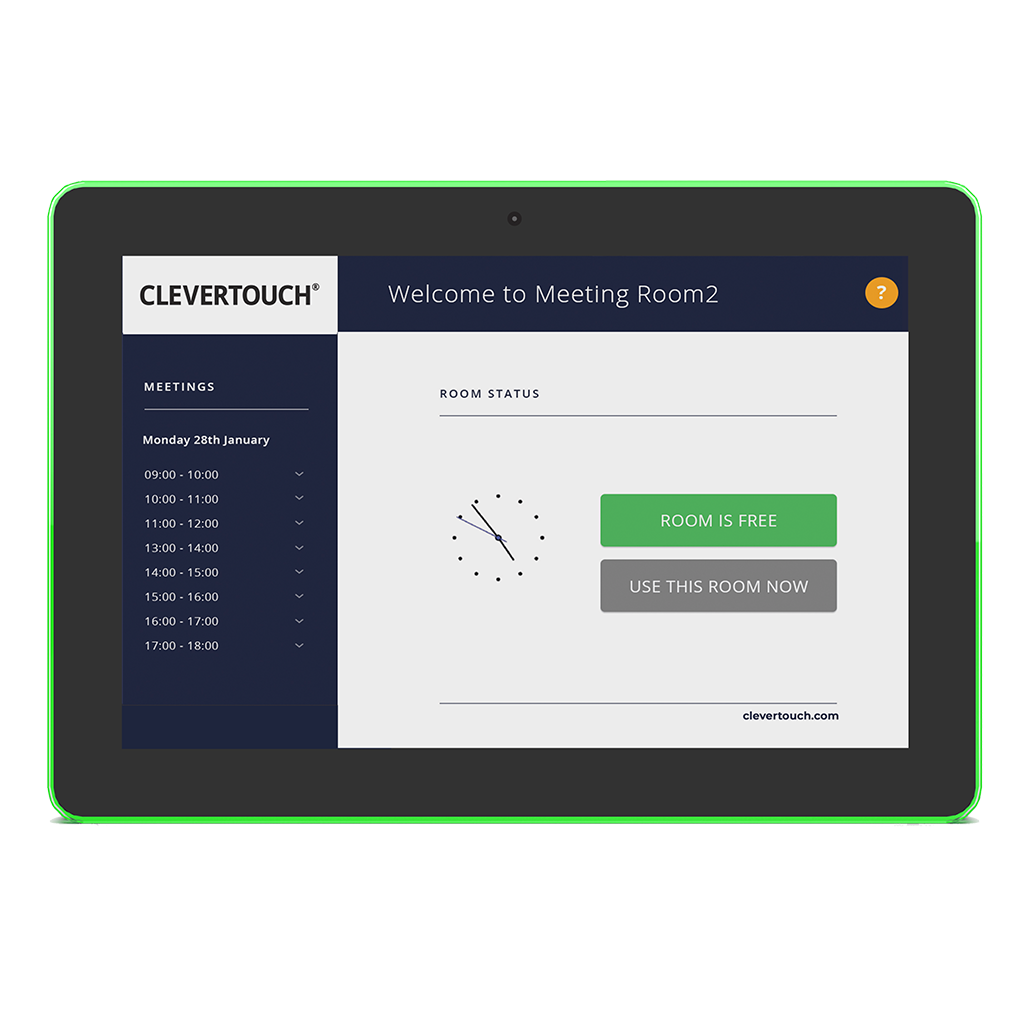 CleverLive Rooms 2 este noul ecran tactil de 10.1" de la Clevertouch care se monteaza pe peretele din afara salii de sedinte si care afiseaza disponibilitatea acesteia prin LED-uri: verde (libera) si rosu (ocupata). Sistemul se integreaza perfect cu Google Calendar, Microsoft 365, Outlook si Microsoft Exchange astfel rezervarile sunt actualizate automat si in timp real. Nu este necesar niciun software suplimentar. In plus, panoul dispune si de functionalitati avansate de Digital Signage.