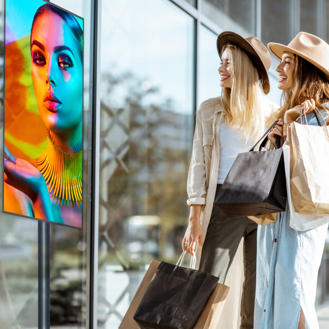 Ecranul Ultra HD 4K oferă imagini clare, culori vibrante și unghiuri largi de vizualizare, fiind ideal pentru conținut informativ sau promoțional. Suprafața anti‑glare și luminozitatea ridicată contribuie la o vizibilitate excelentă chiar și în spații intens iluminate. Designul cu ramă subțire pune accentul pe conținut și se integrează ușor în orice tip de amenajare profesională.