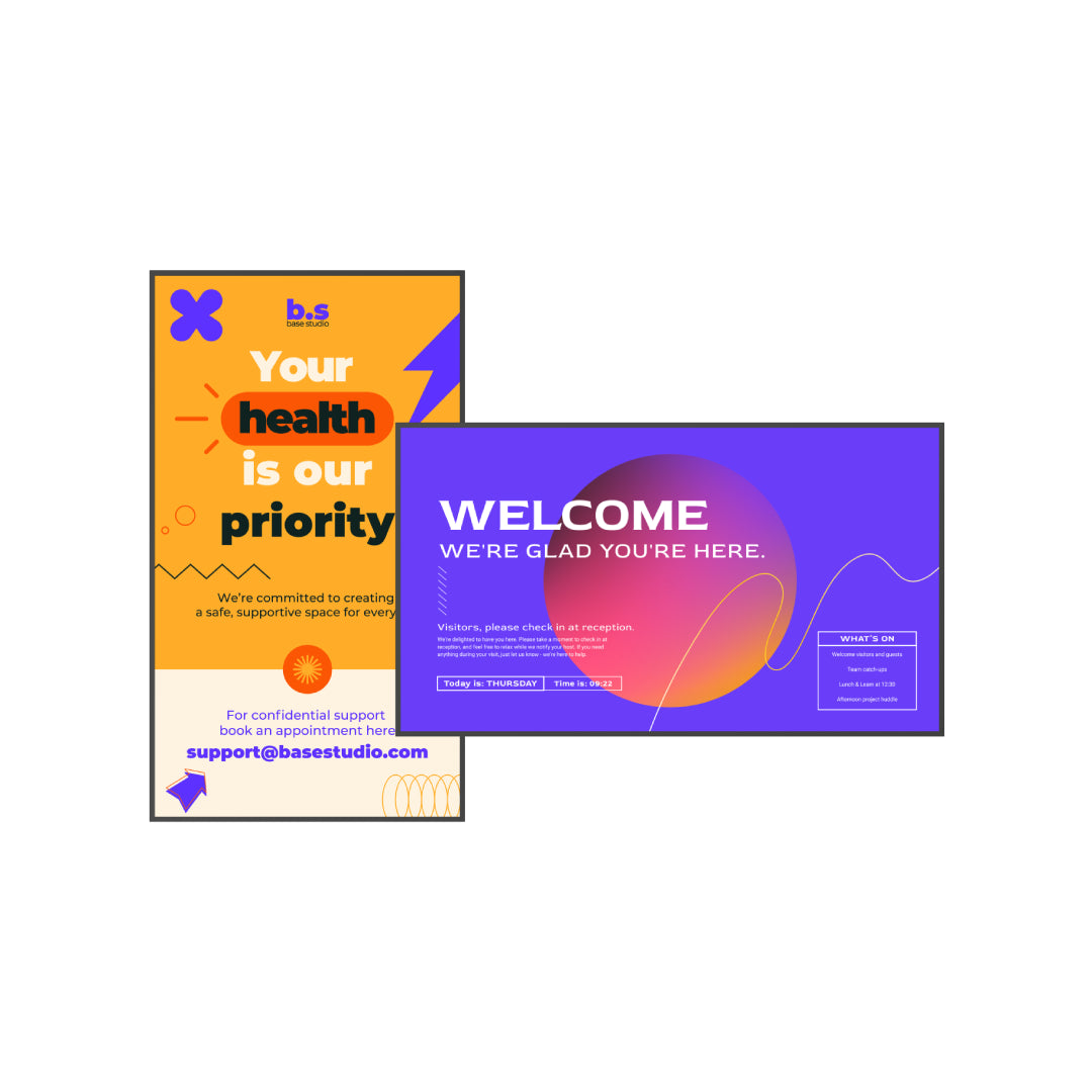 CL Pro 2 elimină nevoia echipamentelor suplimentare, integrând direct funcții avansate de digital signage și prezentare. Afișajul permite rularea de conținut dinamic, mesaje informative și alerte în timp real, dar și utilizarea sa ca display principal în săli de ședință sau spații comune. Trecerea automată între modul de prezentare și cel de digital signage asigură continuitatea comunicării vizuale pe tot parcursul zilei.