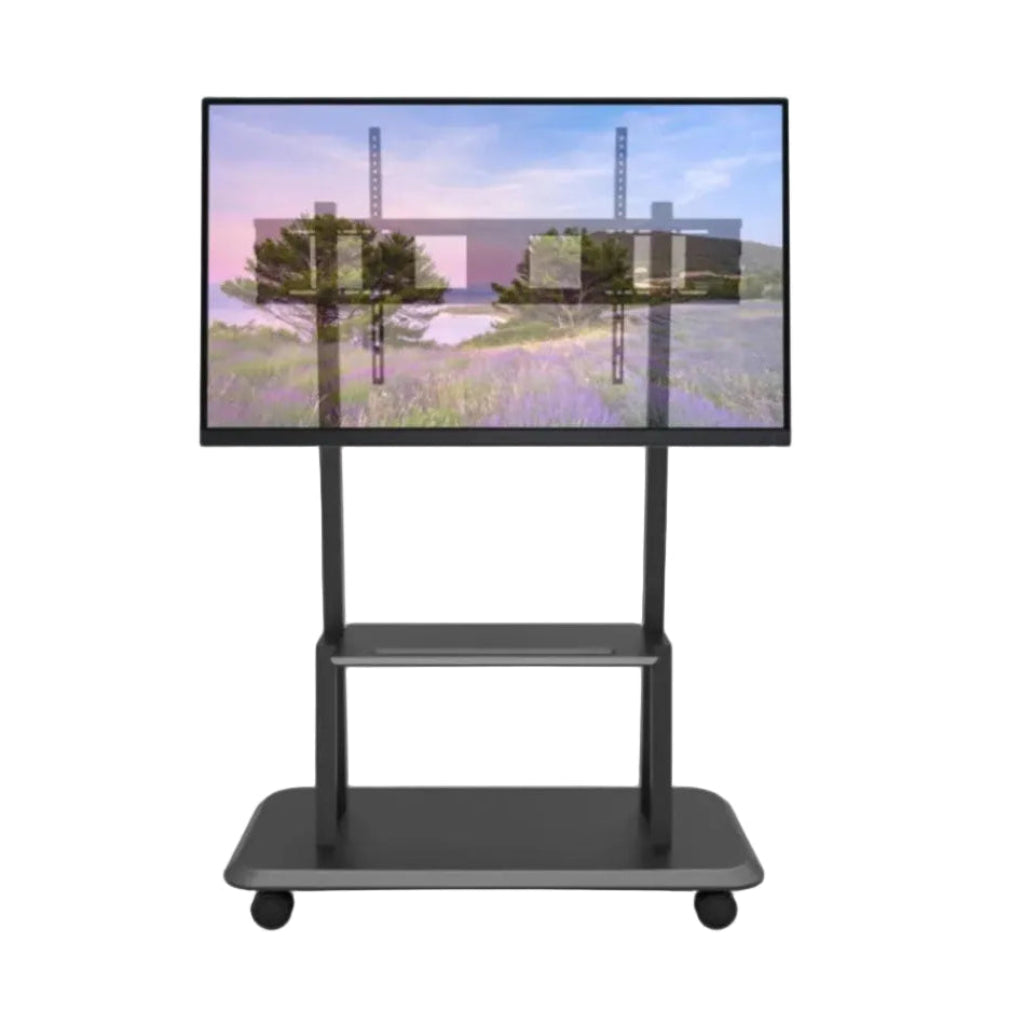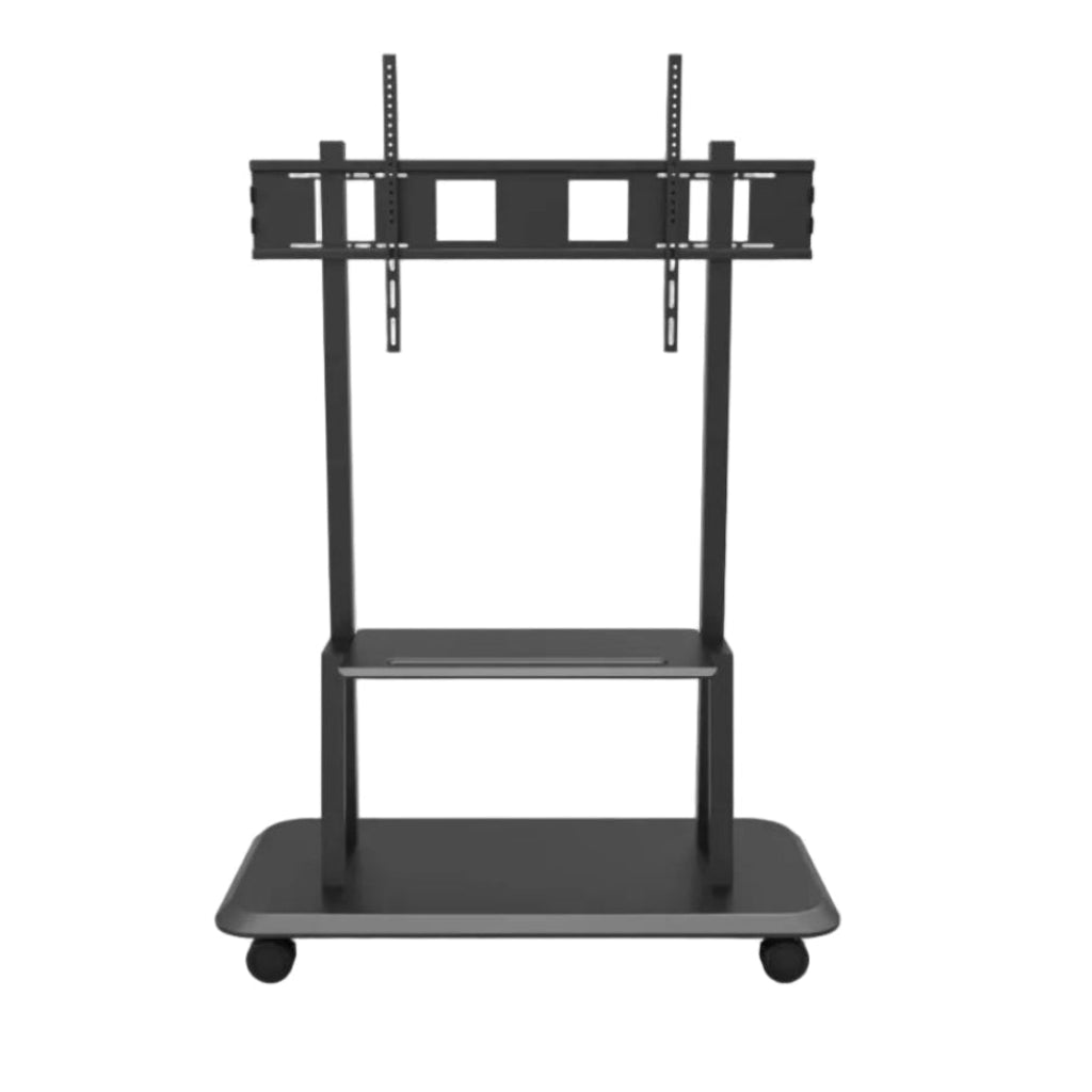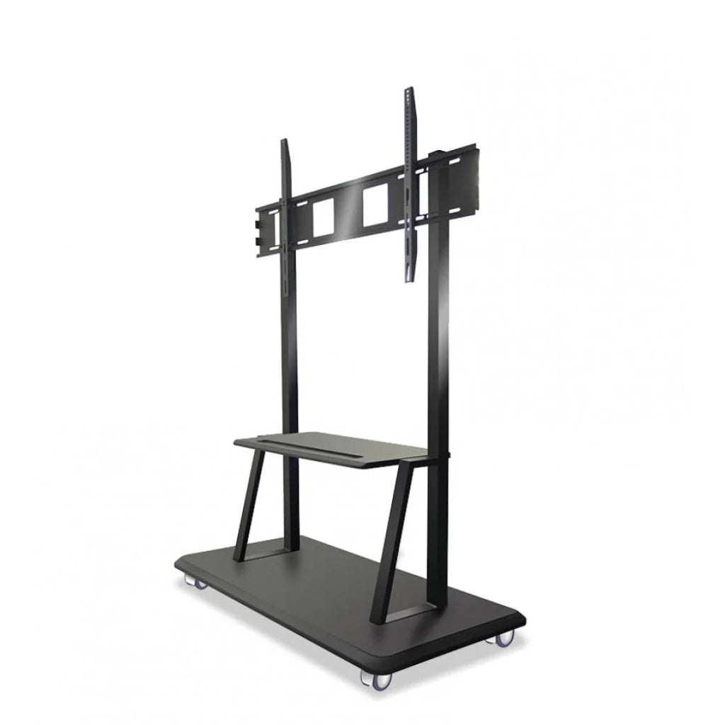 Stand TV profesional de podea, mobil, proiectat pentru instalarea sigură și elegantă a ecranelor de foarte mari dimensiuni. Soluția este destinată mediilor corporate, instituțiilor publice și proiectelor AV unde este necesară flexibilitate, stabilitate și compatibilitate extinsă VESA, fără compromisuri de siguranță.