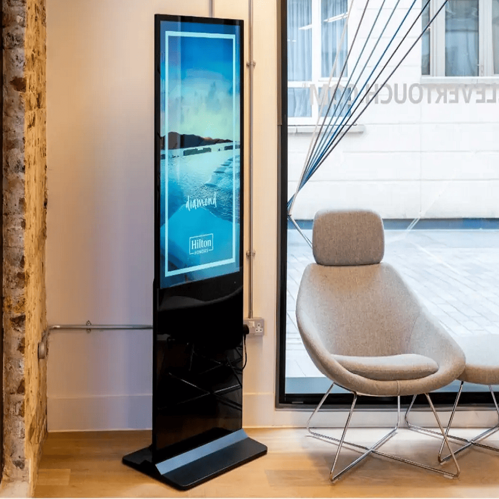 Designul elegant și ultra-subțire al Totemului Digital Signage Clevertouch CTL-55T112KHEK1 se integrează armonios în diverse medii de retail, ospitalitate sau corporative, aducând o notă de rafinament modern care îmbogățește orice spațiu.